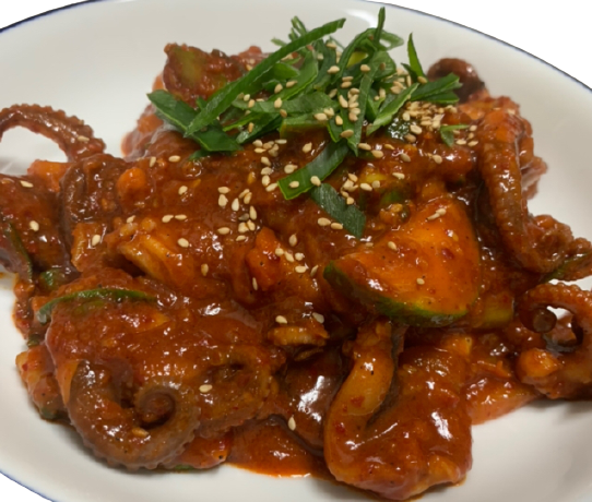 예열된 프라이팬에 미소주꾸미를 넣고 5분간 볶아주세요.