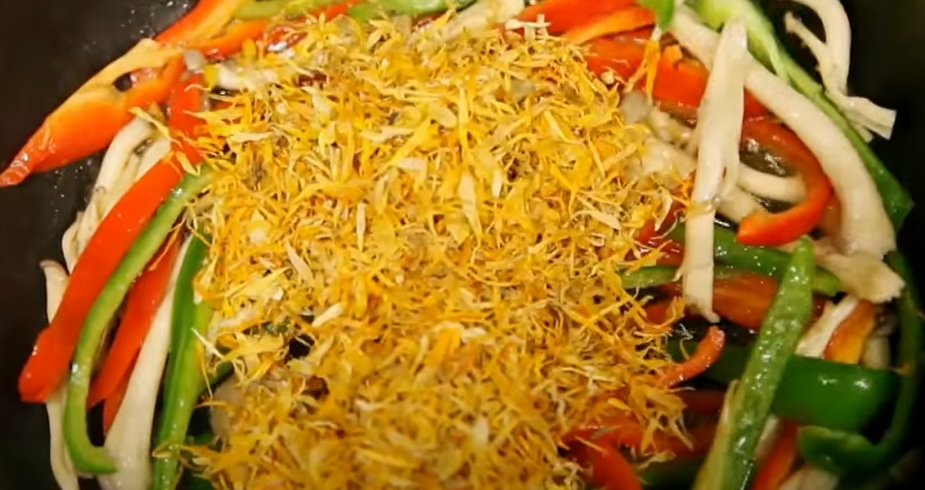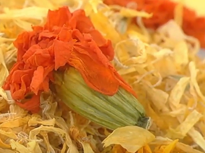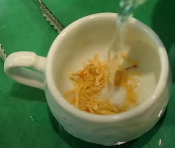 1. 약불에 메리골드 꽃을 덖어준다.(수분을 날려준다)