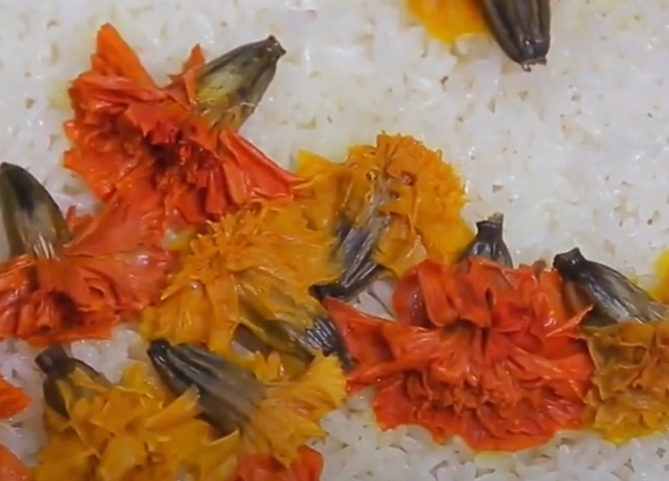 꽃잎은 제거하고 밥을 먹는다.