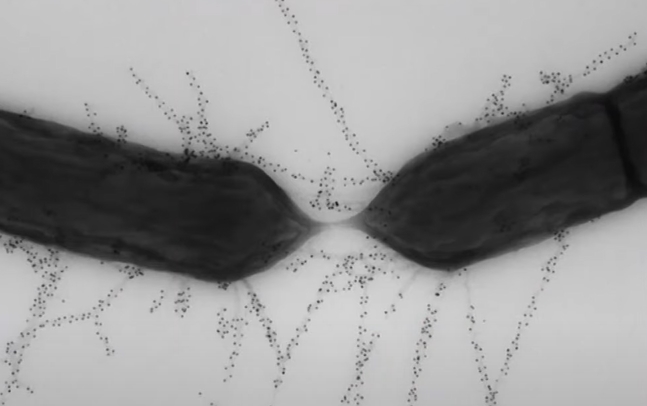 LGG 유산균은 그림에서 보이는 것처럼 섬모가 달려 있어 장에 달라 붙어 정착할 수 있는 능력을 가지고 있다.
