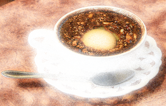 "쌍화수란"이라는 음식인데요. 수란에 쌍화차를 넣어 먹는 겁니다.