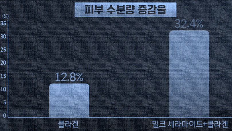 밀크 세라마이드와 콜라겐을 함께 섭취했을 경우 32.4%로 두배 이상 증가
