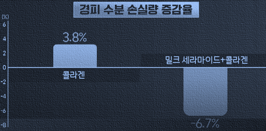 밀크 세라마이드와 콜라겐을 함께 섭취했을 경우 -6.7%로 감소