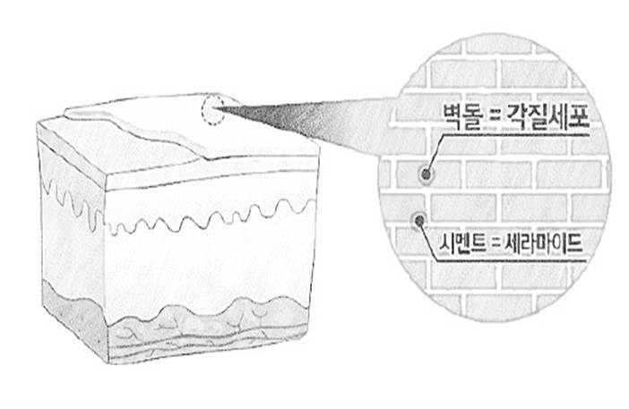 *세포간지질 : 세포를 접착하는 시멘트 역할로 세라마이드, 콜레스테롤, 지방산 등 (35~40%가 세라마이드)