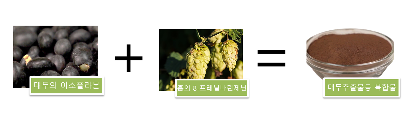 검정콩에서 추출한 대두 이소플라본과 홉에서 추출한 8-프레닐나린제닌이 함유된 복합물입니다.