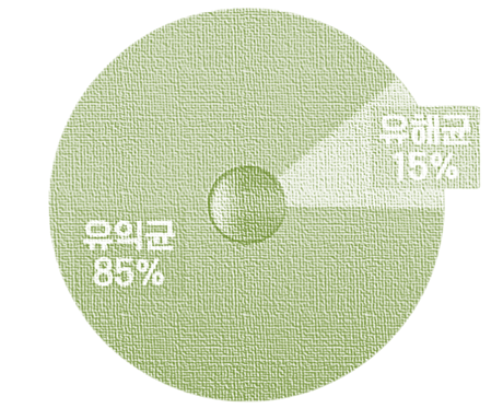 우리 몸의 장내장 내 유익균이 85%, 유해균이 15%가 가장 이상적인 장내 환경이다.