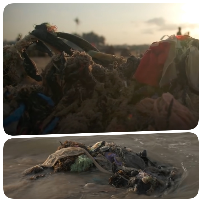 쓰레기로 넘쳐나는 옷은 바다로 흘러 들어간 양도 엄청나다.