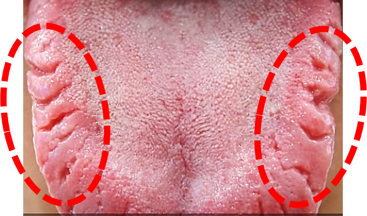 소화기가 약해져 혀가 부으면서 혀 가장자리에 치아 자국이 찍히는 증상이다.