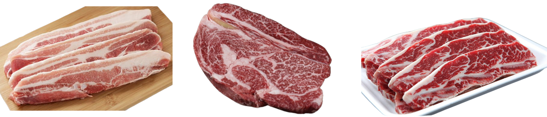 1. 기름기 많은 육류 (삼겹살, 소고기 등심, 갈비 등)