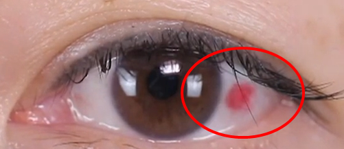 ▶ 눈 흰자에 붉은 점이 반복해서 생긴다.