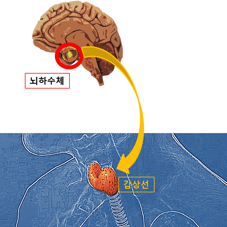 체온이 떨어지면 뇌하수체를 통해 갑상선 자극 호르몬이 분비된다.