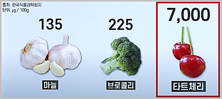 타트체리에는 수면을 유도하는 호르몬(멜라토닌)이 함유되어 있다.