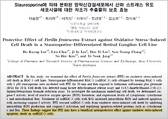 차즈기 추출물 루테올린 성분(L7DG)은 녹내장의 주요 원인인 시신경 세포 사멸을 억제하는데 도움을 준다.