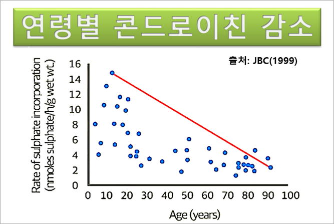 우리 몸에 콘드로이친은 나이가 들면 점점 감소한다.