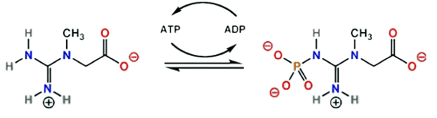 크레아틴은 근육 속에서 인산과 결합해서 크레아틴 인산이라는 형태로 존재한다.