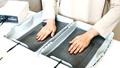 전자판이 부착된 수조에 수돗물을 붓고 손발을 담그거나 겨드랑이용 패드를 물에 적셔 붙이고 치료하는 기기입니다.