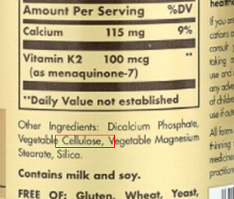 마그네슘은 유효성분과 엉겨 붙어 흡수를 방해하고 셀룰로스는 시간이 갈수록 몸에 축적될 수 있다.