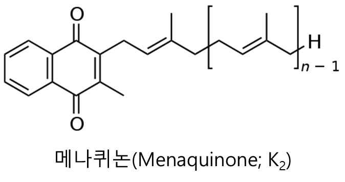 ▷ 메나퀴논(Menaquinone; K2)은 박테리아에 의해 합성된다.