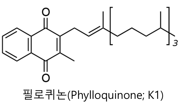 ▷ 필로퀴논(Phylloquinone; K1)은 주로 식물에서 합성된다.