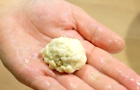 물에 잘 녹는 전분만 빠져 나가게 되고 전분이 모두 녹은 후 찐득하게 껌처럼 남아 있는 덩어리가 글루텐이다.