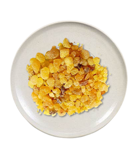 향이 나는 회백색의 나무 진액을 말하며 이것이 굳어진 게 바로 유향, 보스웰리아다.
