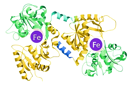 락토페린(lactoferin)은 [아미노산 다발 + Fe(철)]이 결합되어 있는 구조로 구(球)형 당단백질이다.