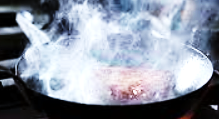 기름이나 지방에서 (주로 푸른색의) 연기가 지속적으로 피어오르기 시작하는 온도