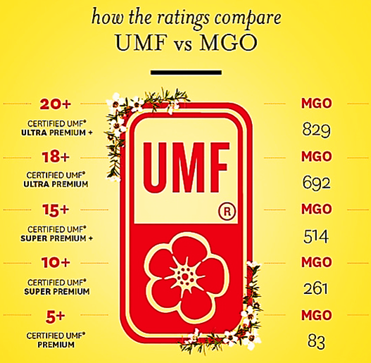일반적으로 UMF 10+ 이상, MGO 263+ 이상이 강력한 항균작용을 하는 것으로 알려져 있다.