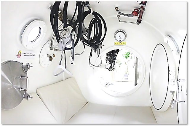 2.0 atm ~ 2.8 atm 정도의 압력을 주면서 100% 고농도 산소를 체내에 공급함으로써 반응을 유발해 질병 치료에 도움을 주는 치료법이다.