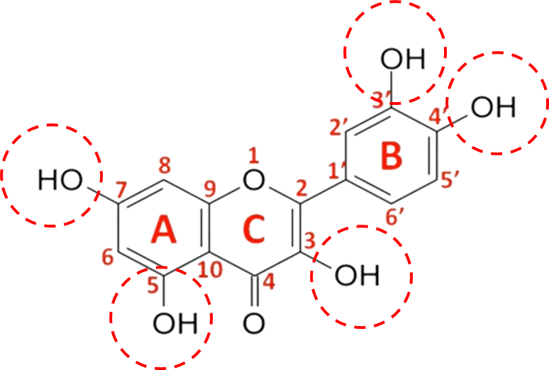 퀘르세틴 구조를 보면 하이드록실 그룹이 5개가 보인다.