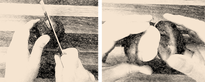 2. 망고스틴 아랫부분을 꾹 눌러주면 쏙 들어간다.