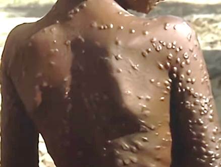 원숭이 두창은 독감과 유사한 증상과 림프절 종창으로 시작해 얼굴과 온몸에 발진을 일으킨다. 마치 천연두와 비슷하다.