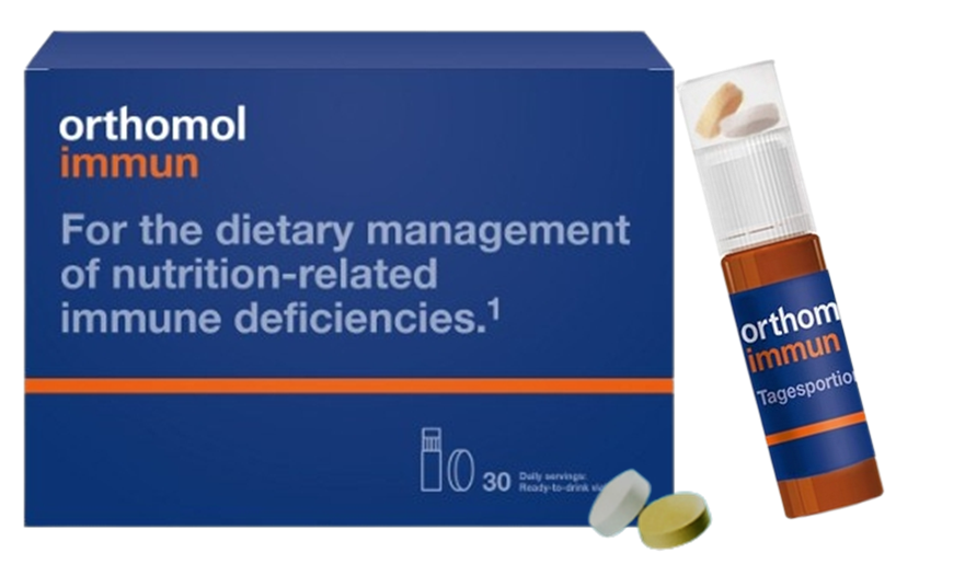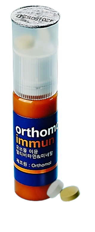 오쏘몰 이뮨(orthomol immun)은 액체와 알약으로 구성되어 모두 섭취하는 영양제이다.