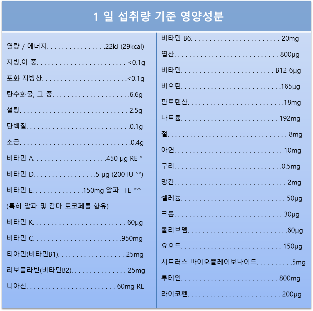 피로회복에 도움이 되는 비타민 B1, B2, B12가 없는 점도 아쉬운 점이다.