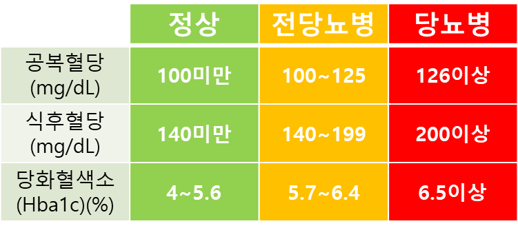 *식후 2시간 혈당 수치 200mg/dl 이상이면 당뇨병으로 진단한다.