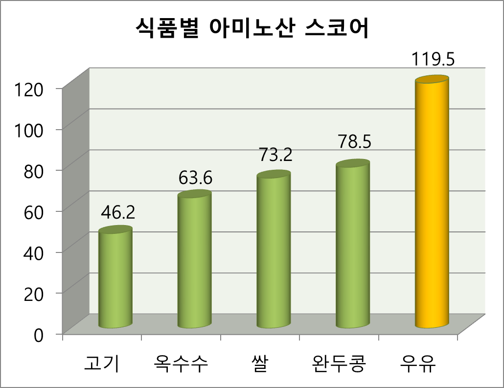 <출처 : 미국 농무부> 식품별 아미노산 스코어