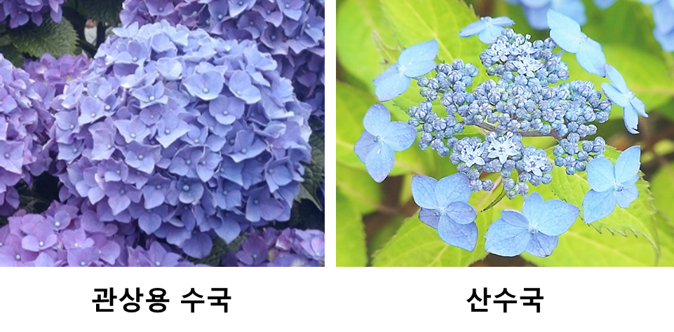 그리고 일반 수국은 추위에 약하지만 산수국은 추위에 강하다. 생명력은 산수국이 강하다는 것을 의미한다.