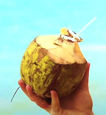 코코넛 워터는 덜 익은 녹색 열매에서 많이 나오며 다양한 미네랄과 영양소를 함유하고 있다.