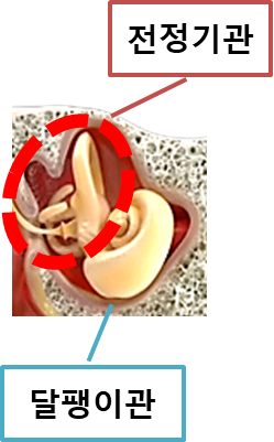여기서 '달팽이관'은 소리를 듣는 기관이며, '전정기관'은 몸의 평형을 담당하는 기관이다.
