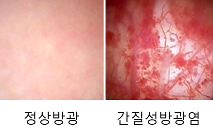 - 방광 내벽이 튼튼하지 못하고 방어 기능이 소실된 상태에서 소변의 칼륨 같은 성분이 방광의 내벽(간질)을 파고들어 염증이 생기게 되는 것을 간질성 방광염이라고 한다.