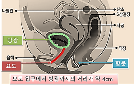 방광염이 여성에게 잘 발생하는 이유는 남성과 여성의 생식기 구조의 차이 때문이다.