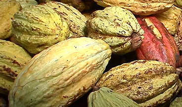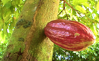카카오나무 열매 한통에 카카오 콩이 보통 36개 정도 나온다.