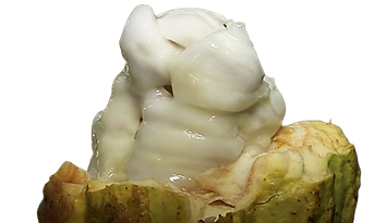 열매 2통으로 작은 초콜릿바 1개 정도 만들 수 있는 양이다.