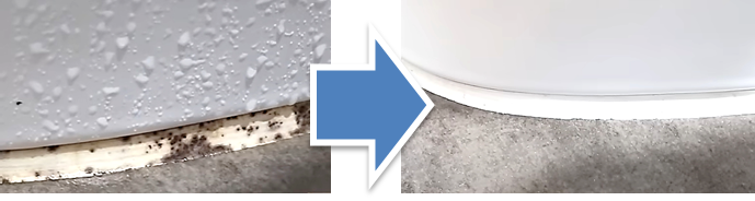 곰팡이가 있는 곳에 뿌려만 주고 5분 후에 물로 씻어내어 보면 아주 깔끔하게 제거된 것을 확인할 수 있습니다.