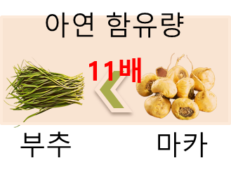 마카의 아연 함유량은 부추보다 11배나 높다.