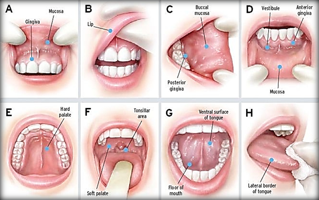 구강암 조기검진을 위해 한달에 한번 정도 가자 검진을 해보고 1년에 한 번 정도 병원에서 검사를 받아보는 것을 권장한다.