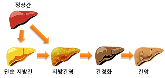 우리가 흔하게 듣는 지방간을 아무렇지 않게 방치했다간 차근차근 지방간염에서 간암까지 진행될 수 있다는 점을 유념해야 한다.