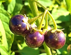 까마중 열매는 9월 ~ 11월경에 둥글고 검게 달린다. 토종 까마중 열매는 그 크기가 작은 편이다.
