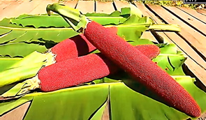 부아메라 열매는 최대 8m까지 자라는 레드 판다누스 나무(부아메라 나무) 한 그루에 열매가 3~4개 열린다.