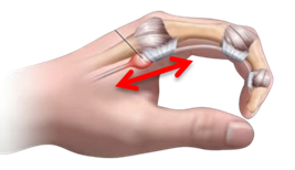 손가락을 펴주는 신전건, 굽히는 굴곡건이 있는 힘줄이 여러 개의 링에 둘러싸고 있는데 손가락을 굽히는 굴곡건에 염증이 생긴 질환을 방아쇠 수지라고 한다. 손가락을 굽히고 펼 때 딸깍 소리가 난다 하여 방아쇠 수지(Trigger Finger)라고 불린다.